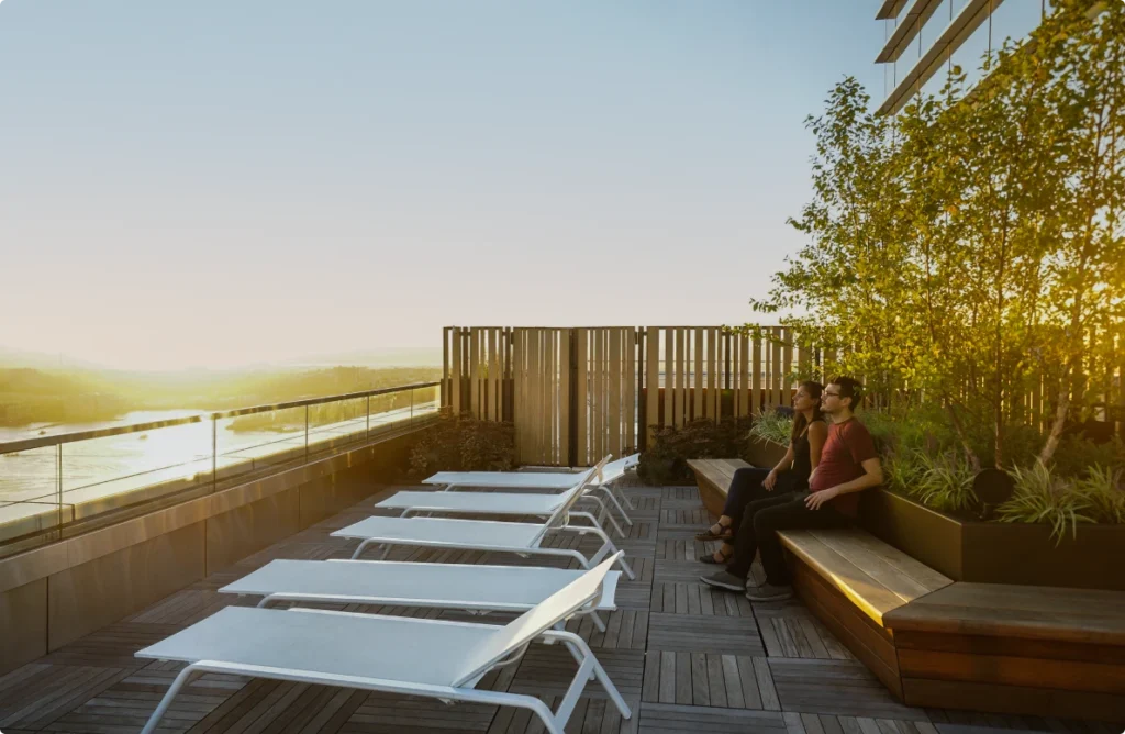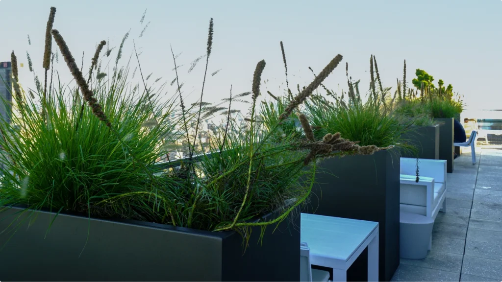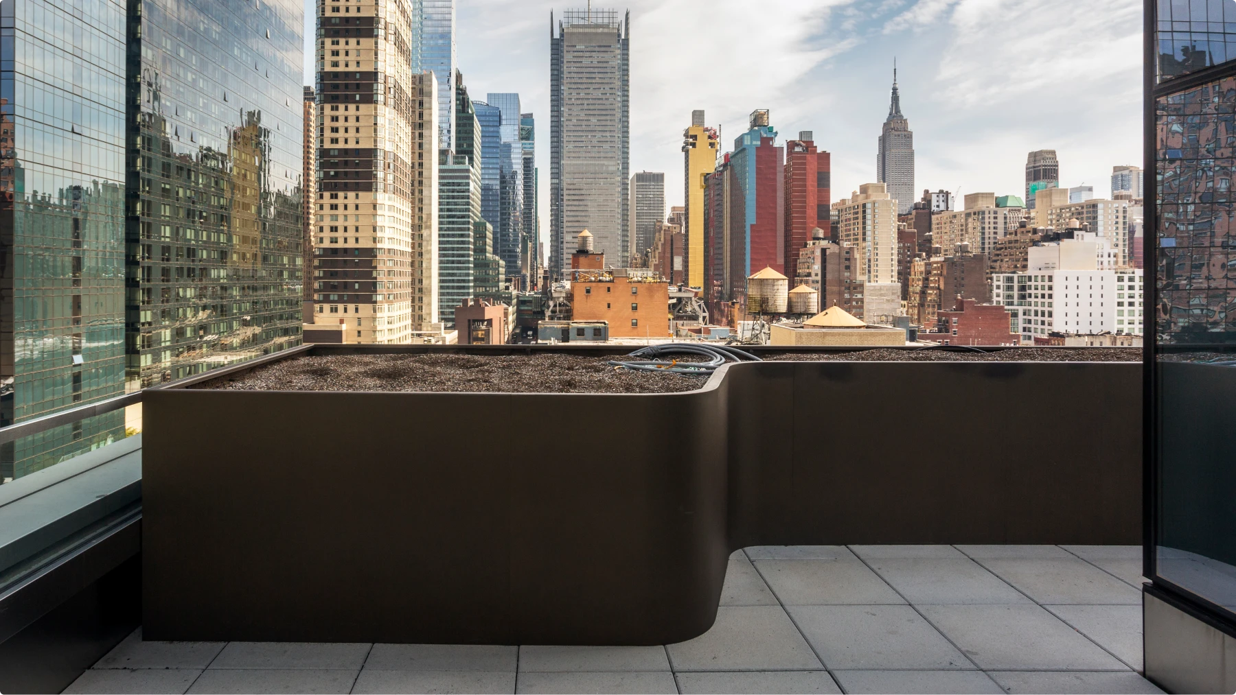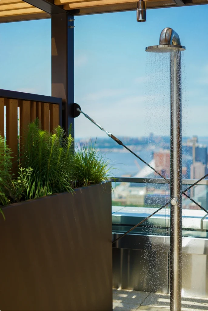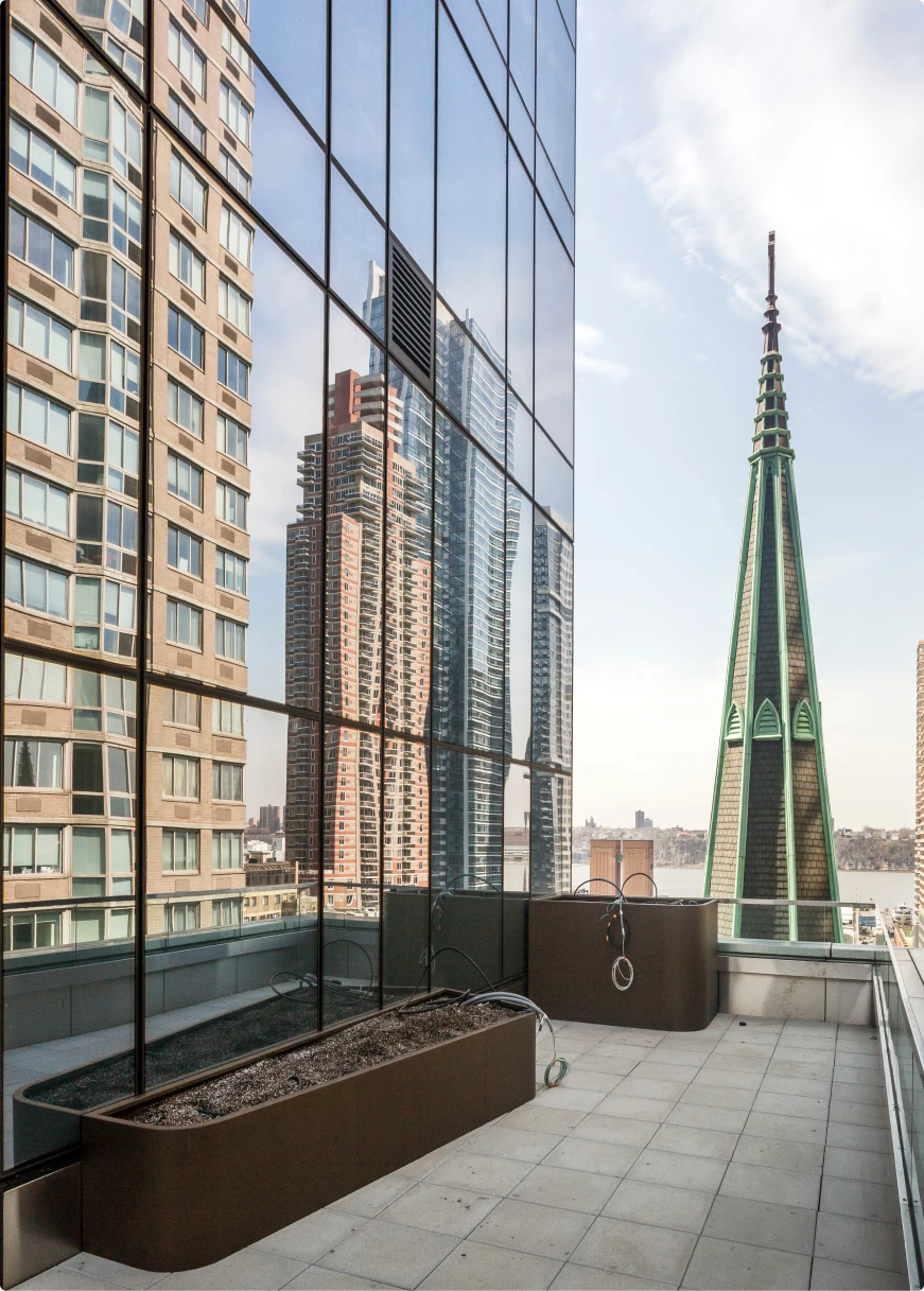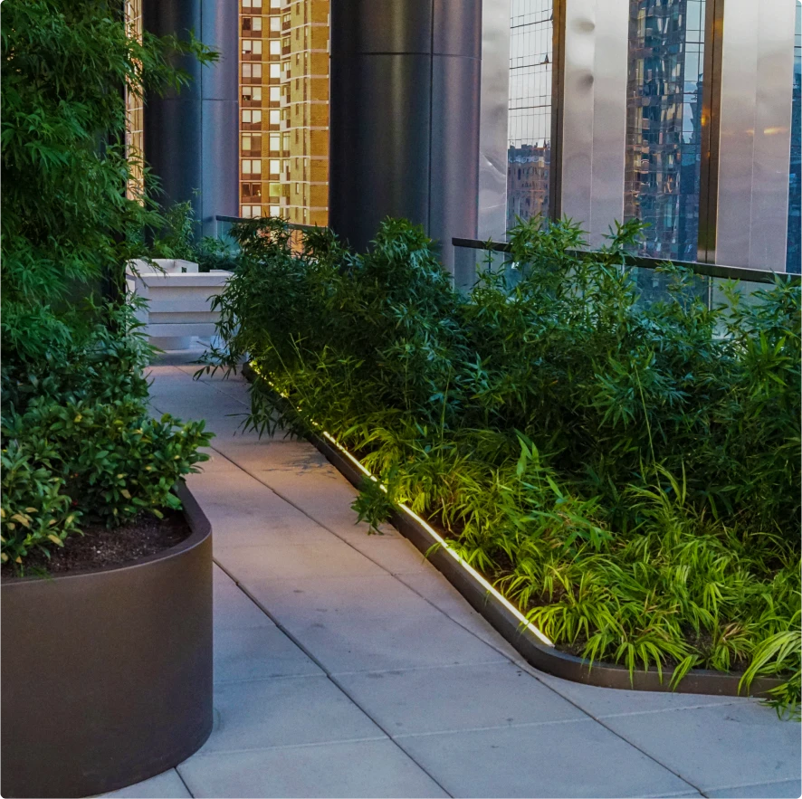 Set in the bustling Hell’s Kitchen neighborhood on Manhattan’s West Side, the 555TEN building is in perfect proximity to some of New York’s best shopping, restaurants, and cultural hubs. Residents don’t have to leave home, however, to enjoy some of the city’s best amenities, including on-site outdoor spaces. ORE collaborated with Terrain-NYC to make the most of shared garden areas at 555TEN, creating planter systems for amenity decks on two levels of the 56-story tower.