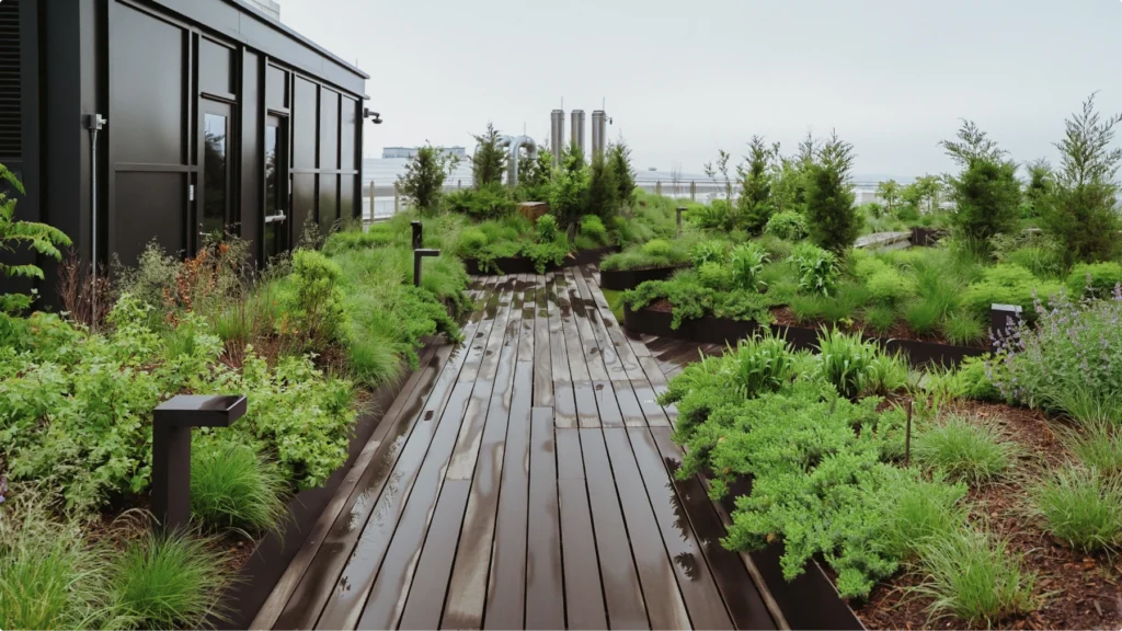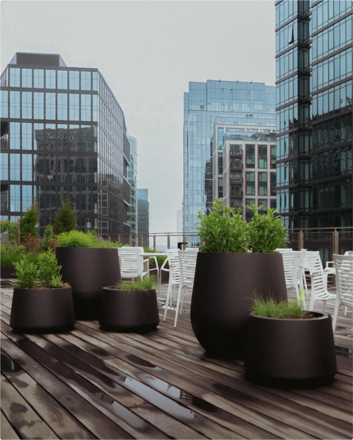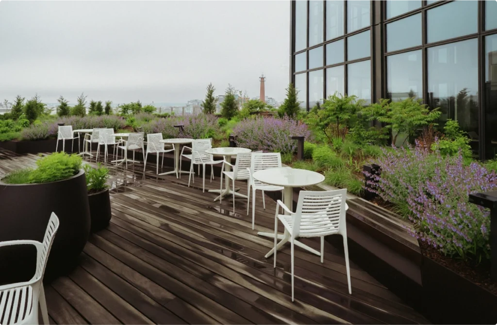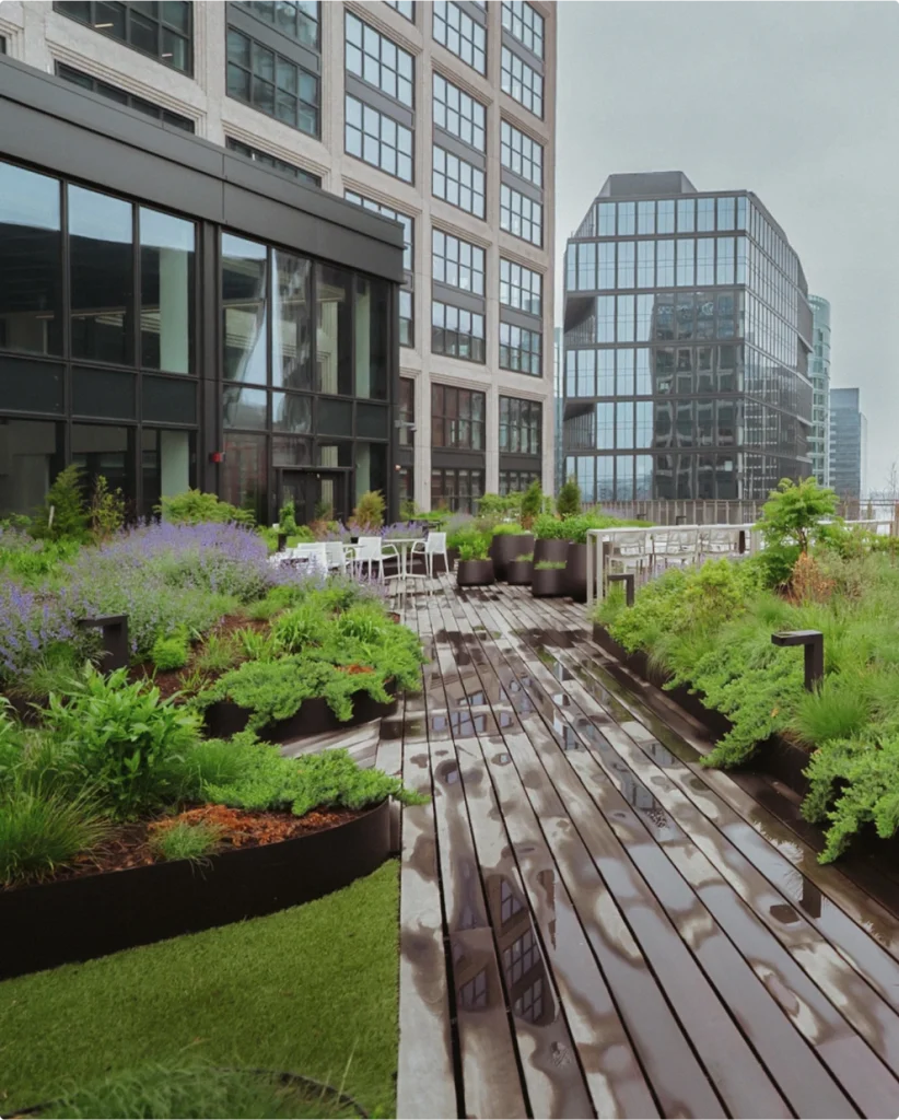 The elevated garden is defined by small meadows formed with tailored FūSE planting systems and accented with freestanding, pre-designed planters. The layout creates opportunities for everything from intimate conversations to large gatherings.