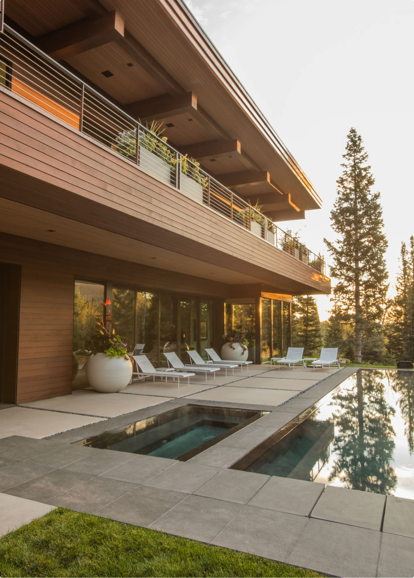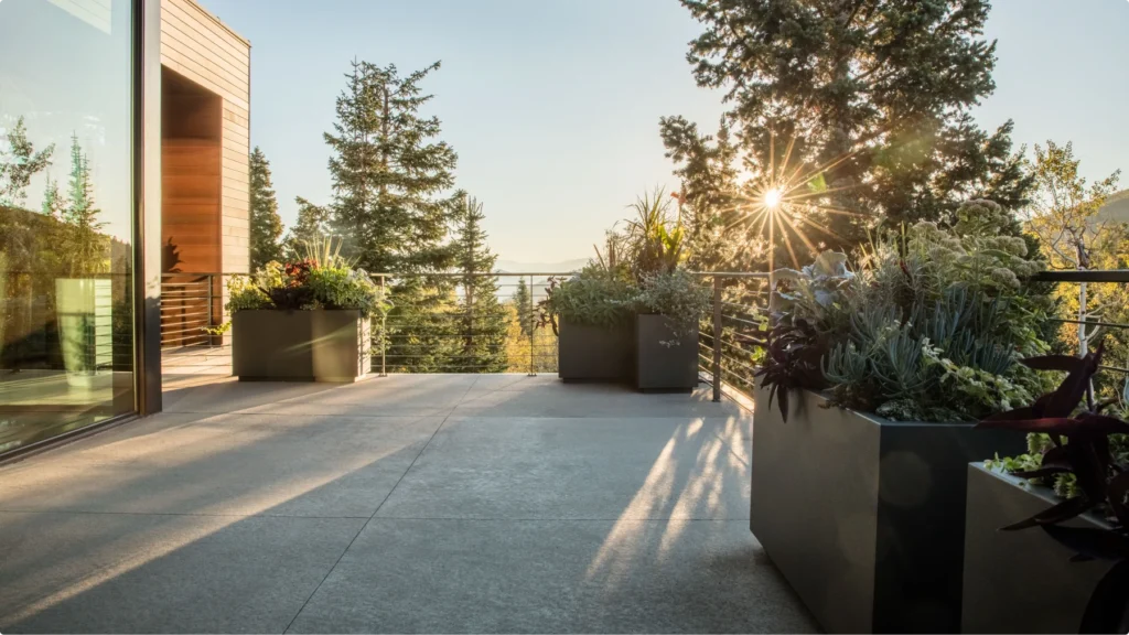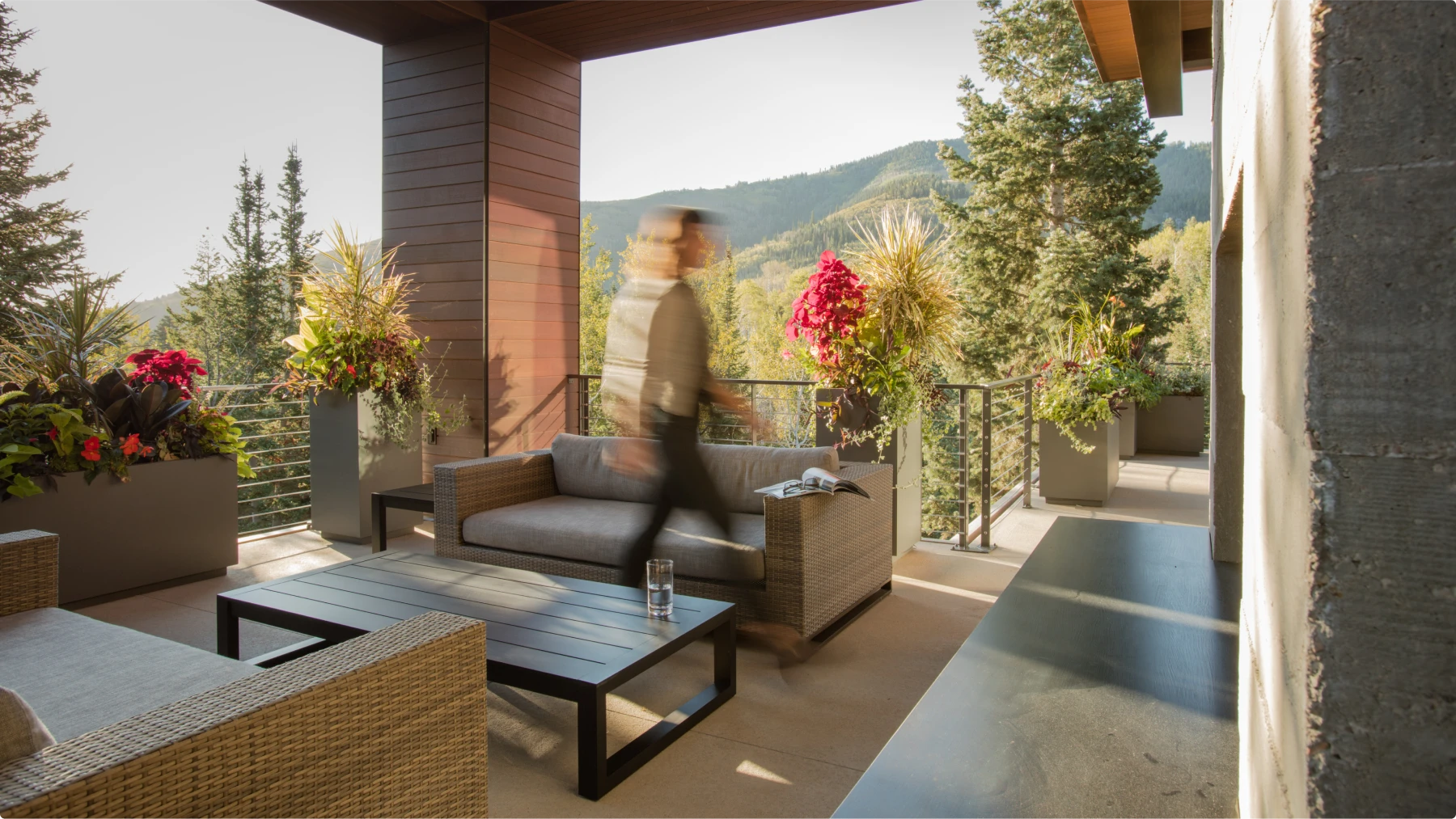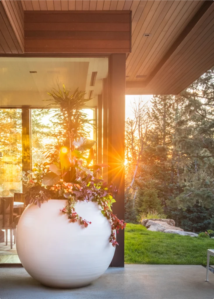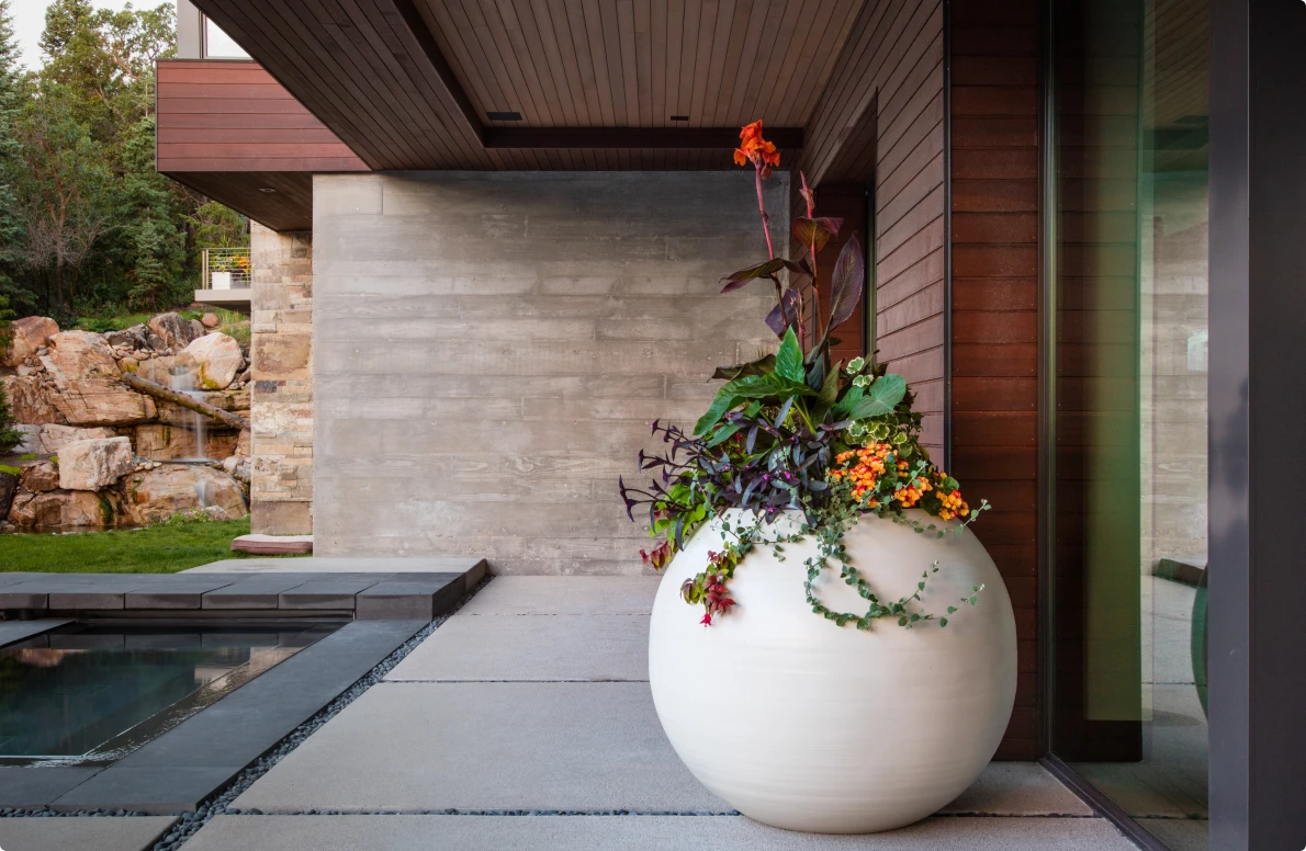 Nestled in a wooded neighborhood on Park City Mountain, this home has multiple decks to take advantage of indoor-outdoor living. ORE worked directly with the homeowner to choose pieces and design the layout for planters and fire features throughout the property. Our product selections, placement, and plantings add subtle variety with thoughtful contrasts in shapes, color, and finishes.